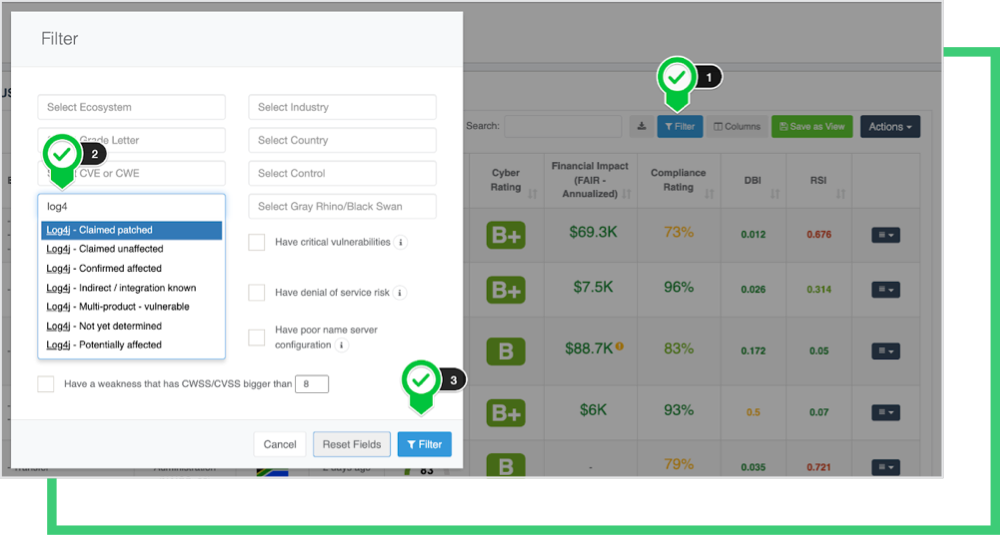Black Kite built a Log4j platform extension from a trusted online public data set. The vulnerability is being continuously monitored and updated as organizations self-report and external data is released.