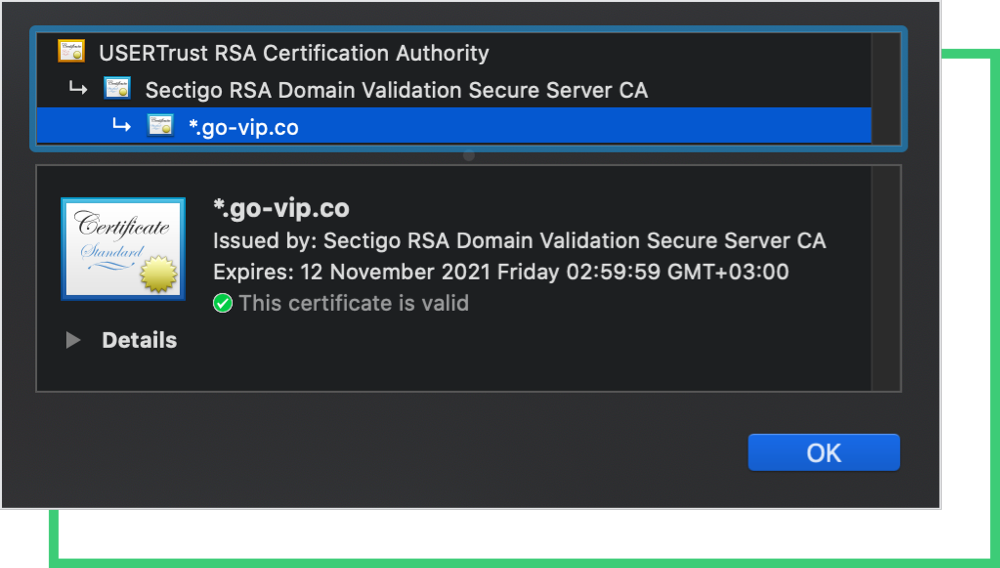 - Certificate failed (chain incomplete): A certificate is signed by a Certificate Authority (CA) to attest to its validity. A certificate chain (or Chain of Trust) is a list of certificates that start from a server’s certificate and terminate with the root certificate. In between, there are intermediate CAs. A trusted SSL certificate must have been issued by a CA, included in the trusted store of the connected device. If an intermediate (or root) CA is not directly embedded in your web browser, the certificate cannot be explicitly trusted.